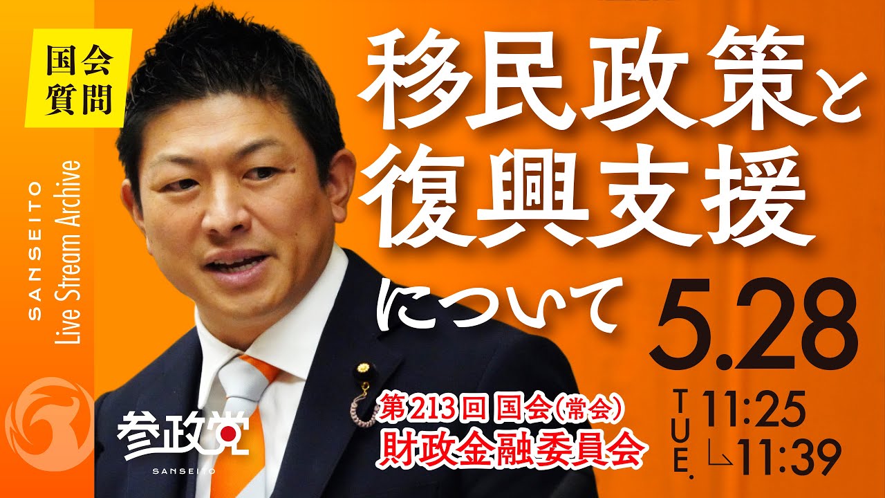 移民政策と復興支援について 参議院議員 神谷宗幣 国会質疑 令和6年5月28日 参政党 - YouTube